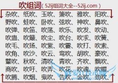 组词大全详解[吹组词]如:杂吹、纸吹、玉吹、箫吹、雅吹、阳吹、野吹、蛙吹、卧吹、弦吹、神吹、鼻吹、吹弹、吹笛、吹荡、吹乐、吹发、吹动、吹蛊、吹簸、吹尘、吹台...