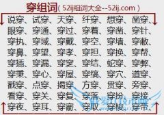 组词大全详解[穿组词]如:说穿、试穿、天穿、纤穿、想穿、凿穿、眼穿、穿通、穿过、穿着、穿凿、穿针、穿执、穿域、穿戴、穿空、穿墙、穿敝、穿鼻、穿望、穿孝、穿担...