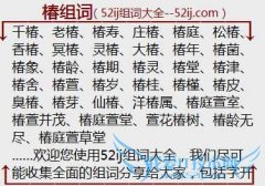 组词大全详解[椿组词]如:千椿、老椿、椿寿、庄椿、椿庭、松椿、香椿、冥椿、灵椿、大椿、椿年、椿菌、椿象、椿龄、椿期、椿灵、椿堂、椿津、椿舍、椿萱、椿岁、椿桂...