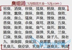 组词大全详解[臭组词]如:容臭、酒臭、秽臭、狐臭、鹘臭、腐臭、附臭、蠢臭、臭味、臭椿、臭钱、臭败、赤臭、臭么、骚臭、声臭、馊臭、遗臭、香臭、贻臭、余臭、臭骂...
