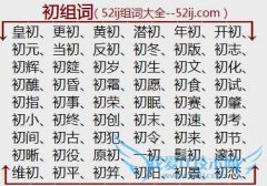 组词大全详解[初组词]如:皇初、更初、黄初、潜初、年初、开初、初元、当初、反初、初冬、初版、初志、初辉、初筵、初岁、初生、初文、初化、初醮、初昏、初霜、初愿...