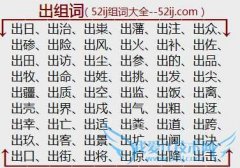 组词大全详解[出组词]如:出日、出治、出粜、出藩、出注、出众、出碜、出险、出风、出火、出补、出佐、出田、出访、出尘、出参、出的、出品、出牧、出命、出姓、出挑...