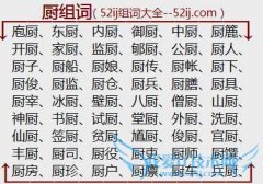 组词大全详解[厨组词]如:庖厨、东厨、内厨、御厨、中厨、厨簏、开厨、家厨、监厨、郇厨、公厨、厨人、厨子、厨船、厨娘、厨传、厨帐、厨下、厨俊、厨监、厨仓、厨兵...