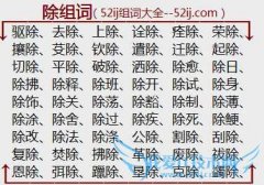 组词大全详解[除组词]如:驱除、去除、上除、诠除、痊除、荣除、攘除、芟除、钦除、遣除、迁除、起除、切除、平除、破除、洒除、除愈、除日、除拂、除释、除班、除开...