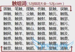 组词大全详解[触组词]如:拨触、笔触、摆触、伤触、挺触、误触、押触、触迕、尘触、触意、触氏、触瓶、触须、触邪、触时、触射、触痛、触瑟、触物、触衣、触通、触罪...