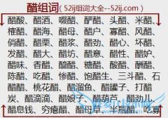 组词大全详解[醋组词]如:醋酸、醋酒、啜醋、酽醋、头醋、米醋、榷醋、醋海、醋母、醋户、寡醋、风醋、俏醋、醋栗、醋浆、醋劲、醋心、坏醋、发醋、醋大、醋坊、醋意...