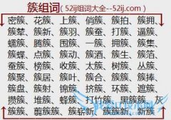 组词大全详解[簇组词]如:密簇、花簇、上簇、俏簇、簇拍、簇拥、簇辇、簇新、簇羽、簇蚕、打簇、逼簇、蠕簇、腾簇、围簇、一簇、拥簇、簇集、簇蝶、点簇、簇动、簇酒...