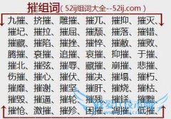 组词大全详解[摧组词]如:九摧、挤摧、雕摧、摧兀、摧抑、摧灭、摧圮、摧拉、摧屈、摧颓、摧落、摧错、摧藏、摧陷、摧挫、摧悴、摧敝、摧败、腾摧、衰摧、追摧、哀摧...