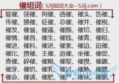 组词大全详解[催组词]如:驱催、领催、拘催、函催、催头、饬催、传催、猥催、征催、总催、催并、催税、催发、催督、催逼、催颜、催切、催归、催情、催首、催生、催钱...