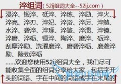 组词大全详解[淬组词]如:浸淬、锻淬、砥淬、淬练、淬励、淬火、淬亮、淬刃、淬妃、淬浴、淬厉、淬勉、水淬、砻淬、淬琢、淬鉴、淬溃、淬镜、淬磨、淬砺、锤淬、陶淬...