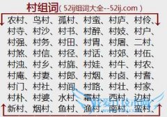 组词大全详解[村组词]如:农村、鸟村、孤村、村蛮、村庐、村伶、村寺、村沙、村书、村醉、村妓、村户、村强、村务、村田、村胄、村屠、二村、村煞、村信、村径、村话...