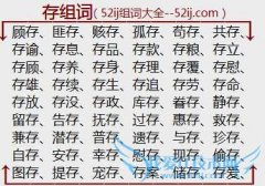 组词大全详解[存组词]如:顾存、匪存、赅存、孤存、苟存、共存、存谕、存息、存品、存款、存粮、存立、存顾、存养、存身、存理、存覆、存慰、存雄、存续、存生、存追...