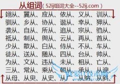 组词大全详解[从组词]如:翊从、翼从、应从、依从、义从、训从、驯从、乡从、协从、谐从、幸从、狎从、袭从、自从、所从、追从、宗从、驺从、祗从、制从、舆从、云从...