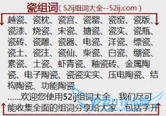 组词大全详解[瓷组词]如:越瓷、瓷枕、瓷宫、瓷罂、瓷窑、瓷版、瓷漆、烧瓷、宋瓷、搪瓷、瓷实、瓷瓶、瓷砖、瓷雕、瓷器、电瓷、洋瓷、缥瓷、瓷土、瓷注、瓷仙、柴瓷...