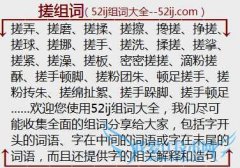 组词大全详解[搓组词]如:搓弄、搓磨、搓揉、搓擦、搀搓、挣搓、搓球、搓挪、搓手、搓洗、揉搓、搓挲、搓紧、搓澡、搓板、密密搓搓、滴粉搓酥、搓手顿脚、搓粉团朱、...