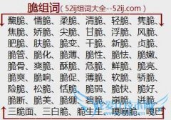 组词大全详解[脆组词]如:黧脆、懦脆、柔脆、清脆、轻脆、隽脆、焦脆、娇脆、尖脆、甘脆、浮脆、风脆、肥脆、肤脆、脆变、干脆、新脆、贞脆、脆管、脆化、脆薄、脆性...