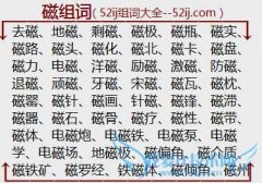 组词大全详解[磁组词]如:去磁、地磁、剩磁、磁极、磁瓶、磁实、磁路、磁头、磁化、磁北、磁卡、磁盘、磁力、电磁、洋磁、励磁、激磁、防磁、退磁、顽磁、牙磁、宋磁...