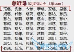 组词大全详解[慈组词]如:宽慈、钧慈、令慈、亲慈、家慈、皇慈、鸿慈、矜慈、慈蔼、慈纶、慈姑、慈良、慈石、慈荫、慈亲、慈雨、慈孝、慈心、慈鸦、慈萱、慈膝、慈念...