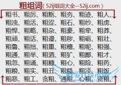 组词大全详解[粗组词]如:粗书、粗厉、粗粝、粗夯、粗迹、粗人、粗浊、粗活、粗涩、粗石、粗纱、粗虏、粗悍、粗略、粗杂、粗豪、粗荦、粗莽、粗顽、粗话、粗谩、粗秽...