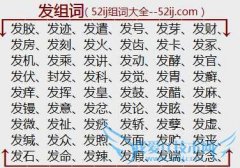组词大全详解[发组词]如:发胶、发迹、发遣、发号、发芽、发财、发房、发刻、发火、发齿、发卡、发冢、发机、发乘、发讲、发动、发酵、发官、发伏、封发、发科、发觉...