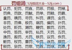 组词大全详解[罚组词]如:认罚、犯罚、罚直、罚恶、罚极、罚殛、罚典、罚款、罚觥、罚单、罚赎、罚爵、量罚、镌罚、苛罚、纠罚、课罚、金罚、非罚、罚俸、极罚、祸罚...