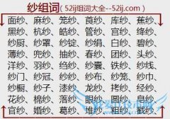 组词大全详解[纱组词]如:面纱、麻纱、笼纱、莨纱、库纱、蕉纱、黑纱、杭纱、皓纱、管纱、宫纱、绛纱、纱厨、纱罩、纱锭、纱绢、白纱、碧纱、薄纱、兜纱、抽纱、春纱...