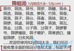 组词大全详解[筛组词]如:筛帘、筛洗、筛号、筛罗、筛糠、筛余、筛选、筛除、筛渣、箩筛、竹筛、筛骨、筛落、筛子、筛分、筛春、筛扬、筛汰、筛锣、筛滤、筛管、筛箩...