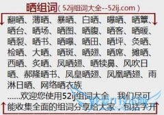 组词大全详解[晒组词]如:翻晒、薄晒、暴晒、白晒、曝晒、晒簟、晒台、晒场、晒图、晒腹、晒客、晒暖、晒裂、晒书、晒曝、晒田、晒坪、灸晒、检晒、大晒、晒斑、晒翅...