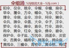 组词大全详解[伞组词]如:阳伞、仪伞、跳伞、伞幄、伞檐、扇伞、旱伞、覆伞、方伞、幡伞、飞伞、灯伞、撑伞、伞扇、金伞、凉伞、珂伞、獭伞、伞兵、旗伞、伞盖、火伞...