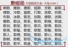 组词大全详解[散组词]如:朝散、雕散、费散、烦散、发散、褫散、樗散、冲散、窜散、打散、怠散、吹散、布散、冰散、散圣、别散、便散、迸散、雹散、散送、散束、散局...