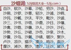 组词大全详解[沙组词]如:自沙、软沙、沙幕、沙轮、穷沙、沙卤、沙朔、沙罗、沙塞、轻沙、沙浦、沙鸥、沙民、沙瓤、沙汰、平沙、毗沙、沙滤、沙三、沙书、沙塔、沙鹿...