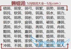 组词大全详解[弱组词]如:桡弱、弱室、弱弓、弱絮、弱势、弱植、弱民、软弱、弱电、弱湍、弱水、弱力、弱风、弱思、弱析、弱约、弱弟、弱羽、弱岁、弱甲、疲弱、儒弱...