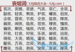 组词大全详解[丧组词]如:丧次、丧榜、丧谤、气丧、丧亡、全丧、缺丧、轻丧、剪丧、护丧、嚎丧、徂丧、会丧、昏丧、节丧、交丧、监丧、降丧、祸丧、闹丧、临丧、莅丧...