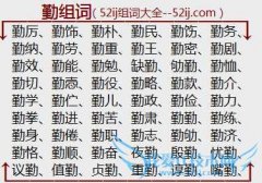 组词大全详解[勤组词]如:勤厉、勤饰、勤朴、勤民、勤饬、勤务、勤纳、勤劳、勤重、勤王、勤密、勤剧、勤效、勤能、勤勉、缺勤、劬勤、勤恤、勤切、勤悫、勤役、勤略...