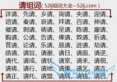 组词大全详解[请组词]如:详请、先请、乡请、询请、央请、迎请、谘请、奏请、哀请、拜请、百请、伸请、催请、刺请、祷请、呈请、陈请、雇请、购请、公请、告请、俸请...