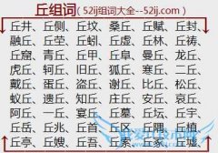 组词大全详解[丘组词]如:丘井、丘侧、丘坟、桑丘、丘赋、丘封、融丘、丘茔、丘蚓、丘虚、丘林、丘祷、丘窟、青丘、丘甲、丘阜、曼丘、龙丘、虎丘、轲丘、旧丘、狐丘...