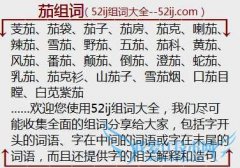 组词大全详解[茄组词]如:芰茄、茄袋、茄子、茄房、茄克、喇茄、辣茄、雪茄、野茄、五茄、茄科、黄茄、风茄、番茄、颠茄、倒茄、澄茄、蛇茄、乳茄、茄克衫、山茄子、...