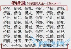 组词大全详解[侨组词]如:侨吴、侨居、侨札、侨庐、华侨、时侨、侨眷、侨治、侨人、侨军、侨资、侨家、侨旧、侨氓、侨流、侨置、侨汇、侨墓、侨住、侨装、侨户、侨郡...