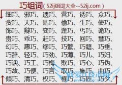 组词大全详解[巧组词]如:细巧、邪巧、遗巧、营巧、诱巧、众巧、贪巧、天巧、贴巧、偷巧、生巧、使巧、饰巧、辩巧、变巧、逢巧、丐巧、诡巧、贵巧、乖巧、赶巧、技巧...