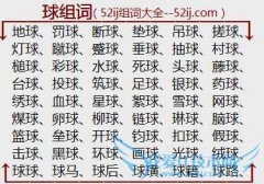 组词大全详解[球组词]如:地球、罚球、断球、垫球、吊球、搓球、灯球、蹴球、蹙球、垂球、抽球、村球、槌球、彩球、水球、死球、头球、藤球、台球、投球、筑球、足球...