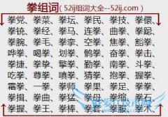 组词大全详解[拳组词]如:拳党、拳菜、拳坛、拳民、拳技、拳儇、拳铳、拳经、拳马、连拳、曲拳、拳跽、拳腕、拳毛、拳挛、空拳、焦拳、豁拳、哗拳、喝拳、划拳、鹘拳...