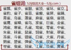 组词大全详解[雀组词]如:雀瓢、雀步、雀眼、雀顶、雀环、雀立、雀豹、雀子、雀盲、雀瘢、雀屏、雀踊、青雀、鸟雀、蓬雀、麻雀、雀扇、雀翎、雀鹰、雀噪、雀鸟、家雀...