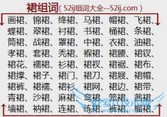 组词大全详解[裙组词]如:画裙、锦裙、绛裙、马裙、帽裙、飞裙、蝶裙、翠裙、衬裙、书裙、桶裙、条裙、筒裙、战裙、罩裙、中裙、衣裙、油裙、孝裙、套裙、秃裙、褓裙...