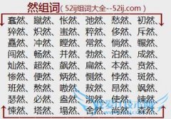 组词大全详解[然组词]如:蠢然、蹴然、怅然、弛然、愁然、初然、猝然、炽然、蚩然、粹然、侈然、斥然、矗然、冲然、瞠然、常然、惝然、冁然、闯然、畅然、并然、勃然...