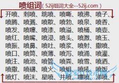 组词大全详解[喷组词]如:开喷、刺喷、跳喷、喷嘶、喷沸、喷子、喷腾、喷溅、喷散、喷勃、喷泉、喷香、喷发、喷嚏、喷漆、喷溢、喷桶、喷壶、喷红、喷嘴、喷浸、喷头...