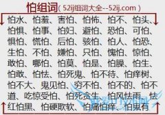 组词大全详解[怕组词]如:怕水、怕羞、害怕、怕怖、怕不、怕头、怕惧、怕事、怕妇、避怕、恐怕、可怕、惧怕、慌怕、后怕、骇怕、怕人、怕恐、生怕、不怕、嫌怕、只怕...