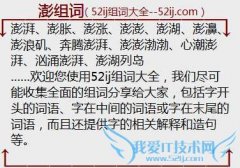 组词大全详解[澎组词]如:澎湃、澎胀、澎涨、澎澎、澎湖、澎濞、澎浪矶、奔腾澎湃、澎澎渤渤、心潮澎湃、汹涌澎湃、澎湖列岛 另外还讲解澎的组词、拼音、繁体字、解...