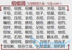 组词大全详解[纽组词]如:揿纽、纽捏、纽襻、环纽、关纽、瓜纽、干纽、厄纽、斗纽、纽子、纽星、纽扣、解纽、压纽、玄纽、衣纽、印纽、正纽、螭纽、秤纽、傍纽、锁纽...