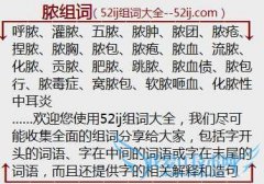 组词大全详解[脓组词]如:呼脓、灌脓、五脓、脓肿、脓团、脓疮、捏脓、脓胸、脓包、脓疱、脓血、流脓、化脓、贡脓、肥脓、跳脓、脓血债、脓包行、脓毒症、窝脓包、软...