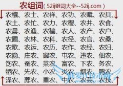 组词大全详解[农组词]如:农穰、农士、农祥、农功、农赋、农具、农土、农忙、农力、农稷、农井、农食、农晨、农渔、农穑、农人、农产、农户、农圃、农林、农科、农径...